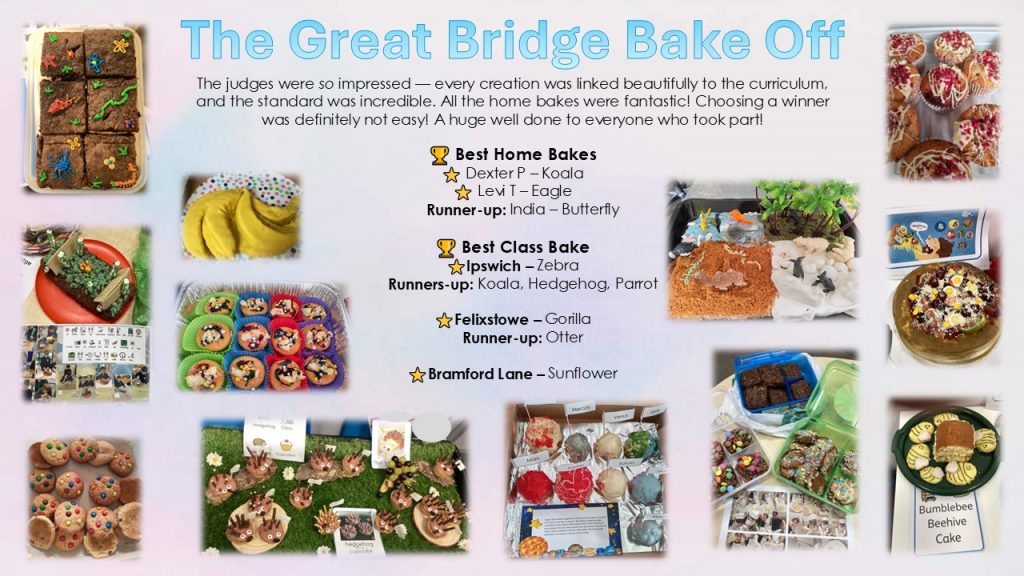 The judges were so impressed — every creation was linked beautifully to the curriculum, and the standard was incredible. All the home bakes were fantastic! Choosing a winner was definitely not easy! A huge well done to everyone who took part!